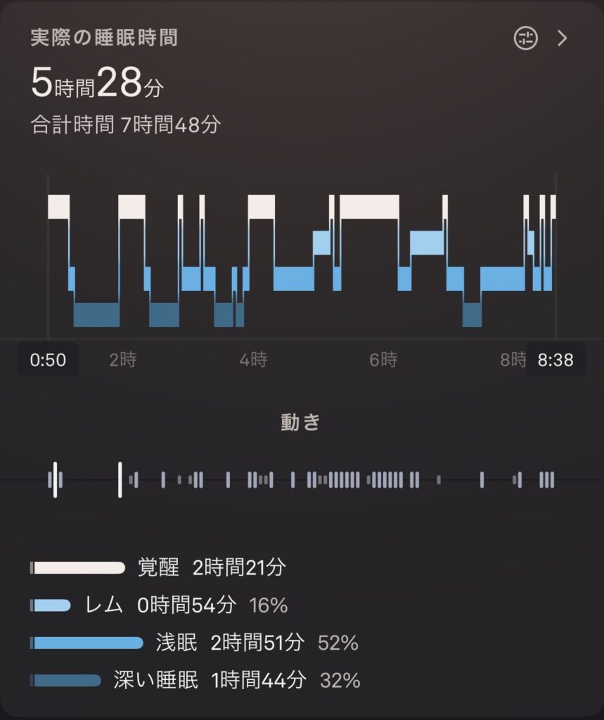 また、血中酸素濃度の状態も計測してくれるため、自分では気付けない睡眠時無呼吸症候群などの兆候も確認できるのが良いですね。