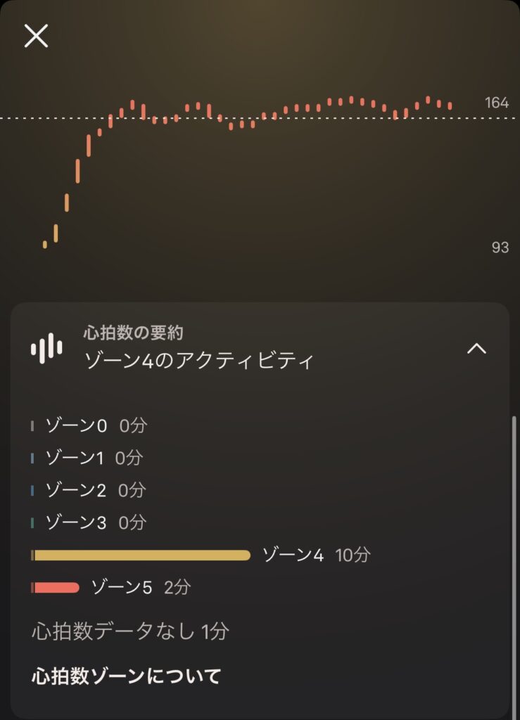 運動中の心拍数の状態もモニタしてくれ、どの程度負荷がかかっているかも可視化されます。